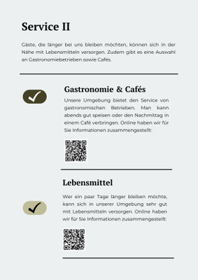 Unsere Gästemappe soll helfen, dass Sie sich rundherum wohlfühlen während Ihres Aufenthaltes bei uns. Die Mappe ist auf dieser Seite digital hinterlegt. Sie finden Sie auch in Ihren Zimmern bzw. der FEWO als Printversion.